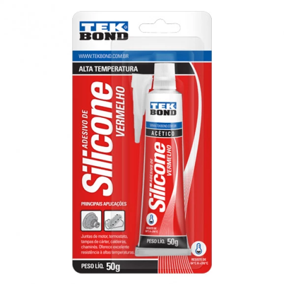 Descrição Extra Adesivo de Silicone Acético 50g Vermelho - Alta Temperatura - Tekbond Cor Vermelho Imagem 1 - Descrição no_selection Imagem 2 - Descrição no_selection