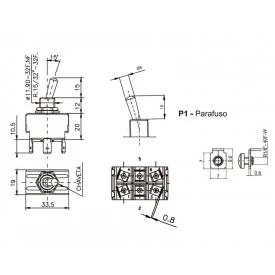 Chave Alavanca Metálica Bipolar 15A/120V 14.207 Liga/Desliga/(Liga) A1B1P1Q - Margirius